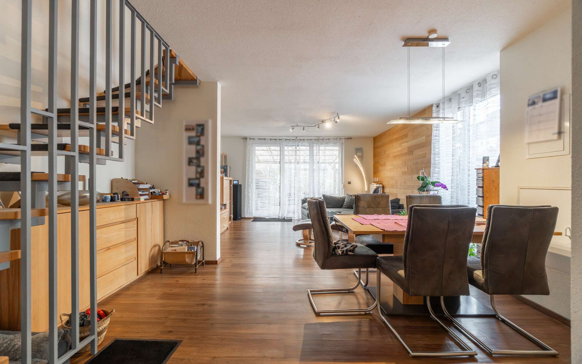 Dieses attraktive und familienfreundliche Reihenendhaus, aus dem Jahre 2003, in Schwenningen bietet auf ca. 136 m² Wohnfläche ein durchdachtes Raumkonzept mit 5 großzügig geschnittenen Zimmern und viel Platz für die ganze Familie. Im Erdgeschoss finden Sie den Windfang, ein Gäste-WC mit WC und Waschbecken, eine moderne Küche mit Abstellraum und einen offen gestalteten Ess- und Wohnbereich mit Zugang zur Terrasse und zum Garten. Im Obergeschoss sind zwei geräumige Schlafzimmer, ein Tageslichtbadezimmer mit WC, Waschbecken, Dusche, Badewanne und Platz für eine Waschmaschine und ein Abstellraum untergebracht. Im ausgebauten Dachgeschoss sind zwei weitere Schlafräume vorhanden, welche für verschiedenste Zwecke verwendet werden können z.B. Kinderzimmer, Gästezimmer, Büro, Ankleidebereich, Hobby, etc. Für unser Fahrzeug steht uns ein Tiefgaragenstellplatz zur Verfügung. Im Kaufpreis enthalten sind die Einbauküche sowie die Gartenhütte. Dieses Reihenendhaus vereint durchdachte Grundrisse, großzügige Wohnbereiche und eine ruhige, familienfreundliche Atmosphäre zu einem Zuhause, in dem wir uns jeden Tag aufs Neue angekommen fühlen. Kontaktieren Sie uns noch heute, um mehr über diese attraktive Immobilie zu erfahren und sich selbst von ihren Vorzügen zu überzeugen. Im vollständigen Exposé erhalten Sie zudem Zugang zu einem virtuellen 360-Grad-Rundgang, der Ihnen bereits vorab einen umfassenden Eindruck der Immobilie vermittelt.