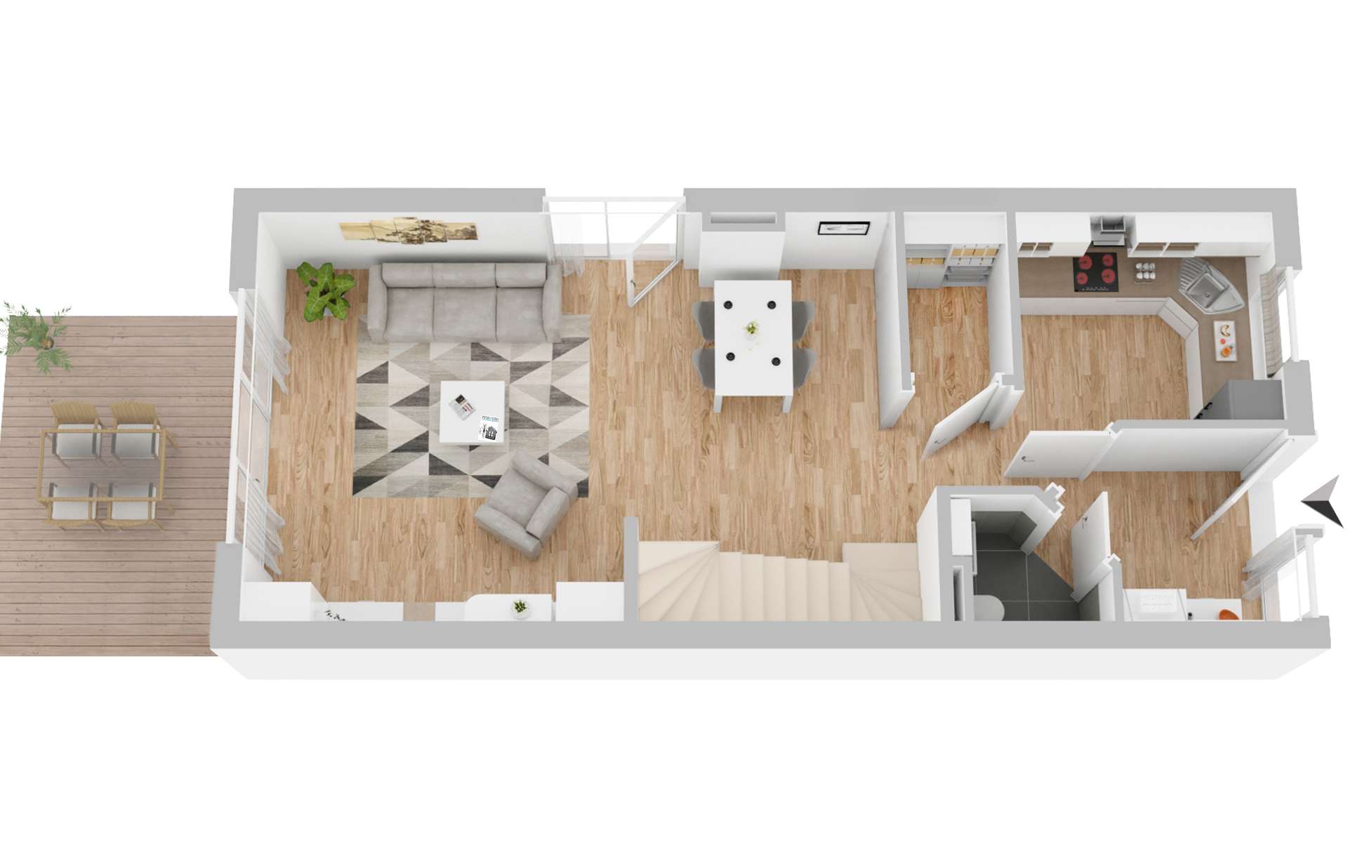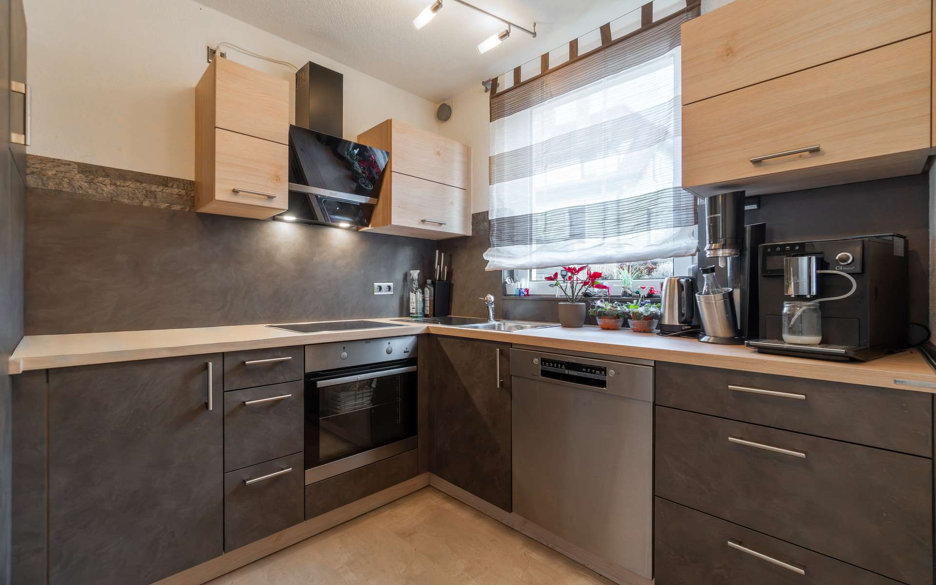 – moderne Einbauküche (April 2023) – Tageslichtbadezimmer – separates Gäste-WC – zwei Abstellräume – überdachte Terrasse mit Garten in Westausrichtung – Tiefgaragenstellplatz
