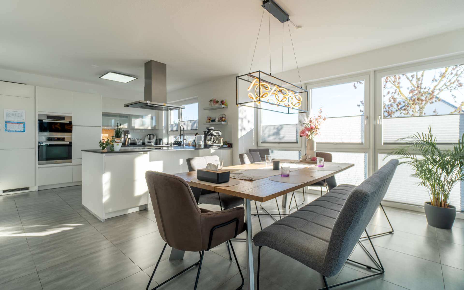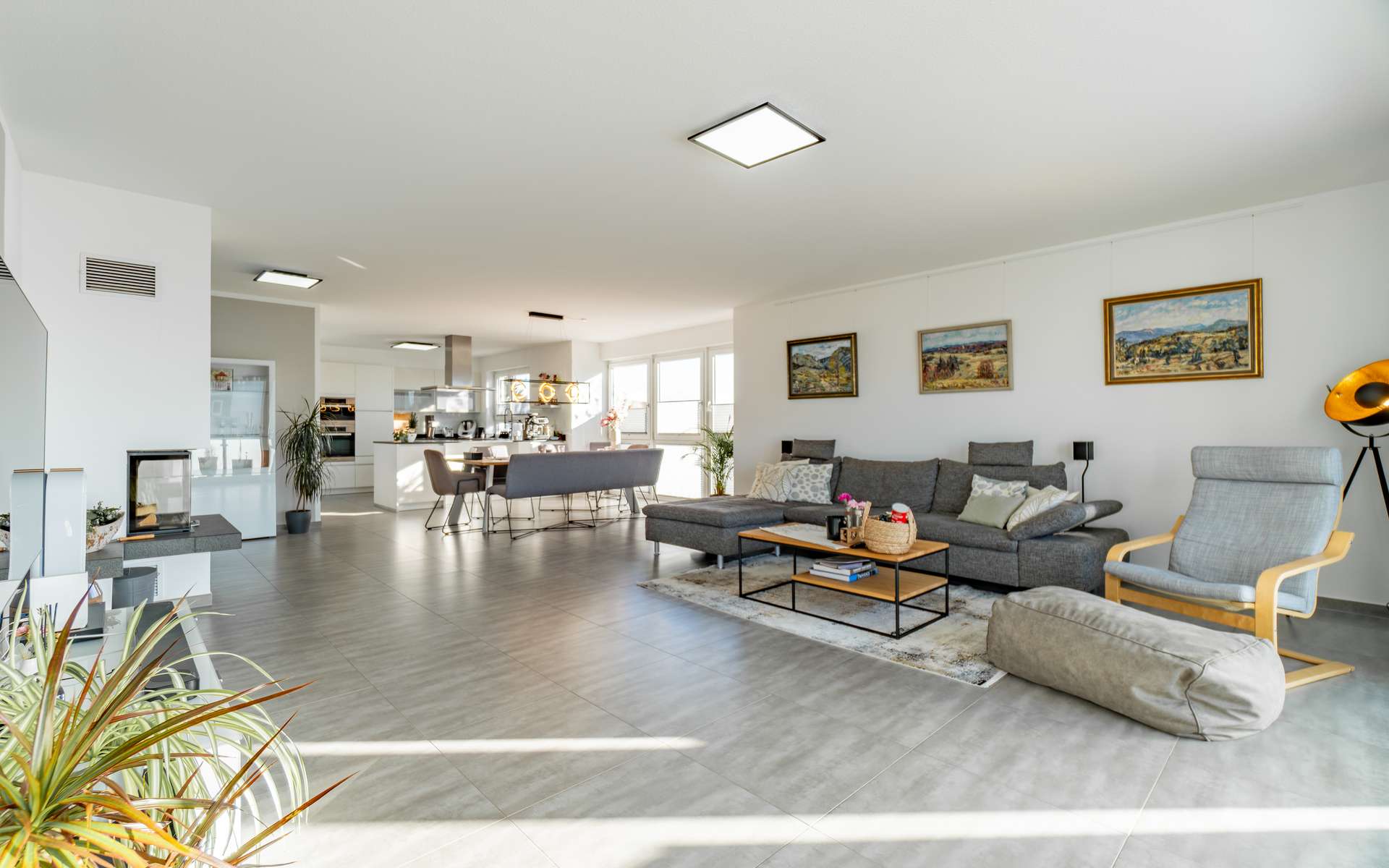 Diese moderne, barrierefreie 5-Zimmer-Wohnung aus dem Jahr 2011 besticht durch ihre hochwertige Ausstattung und durchdachte Raumaufteilung. Sie befindet sich in einem beliebten, familienfreundlichen Wohngebiet „Strangen“ in Schwenningen und vereint Komfort mit Stil und Funktionalität. Auf ca. 203,93 m² Wohnfläche bietet die Wohnung einen großzügigen Eingangsbereich mit Diele, einen großen, hellen und offenen Koch-, Ess- und Wohnbereich mit moderner Einbauküche (inkl. Granitarbeitsplatte), Speisekammer und Kaminofen sowie direkten Zugang zum sonnigen Süd-Balkon. Neben dem Elternschlafzimmer stehen uns drei weitere helle Zimmer zur Verfügung, die sich ideal als Kinder- oder Arbeitszimmer nutzen lassen. Zwei Bäder mit Tageslicht – das eine mit Badewanne, Dusche und Doppelwaschbecken und WC, das andere mit Waschbecken, Dusche und WC – runden das Angebot ab. Der Balkon ist sowohl vom Wohnzimmer als auch vom Elternschlafzimmer und zwei weiteren Zimmern zugänglich. Hochwertiger Parkettboden in den Schlafzimmern und zeitlose, moderne Fliesen in Wohnbereichen und Bädern schaffen eine harmonische Verbindung von Ästhetik und Funktionalität. Besonders eindrucksvoll an dieser Wohnung ist das Gefühl von Komfort und Freiheit: Bodengleiche Duschen, ein durchgängig barrierefreier Zugang von der Tiefgarage bis direkt in die Wohnung sowie großzügig dimensionierte, rollstuhlgerechte Türen schaffen ein Wohnumfeld, das einfach überzeugt. Zur Wohnung gehören zwei Tiefgaragenstellplätze, ein separat abschließbarer Kellerraum mit Fenster, eine großzügige Waschküche, ein Fahrradraum und ein Holzlager für das Brennholz. Im Kaufpreis sind sowohl die moderne Einbauküche als auch beide Kfz-Stellplätze enthalten. Dieses Objekt überzeugt durch seine stilvolle Ausstattung, praktische Details und seine familienfreundliche Lage – ideal für Menschen, die Wert auf Komfort, Qualität und durchdachtes Wohnen legen. Für weitere Informationen oder eine persönliche Besichtigung stehen wir Ihnen sehr gerne zur Verfügung. Wir freuen uns auf Ihre Kontaktaufnahme!